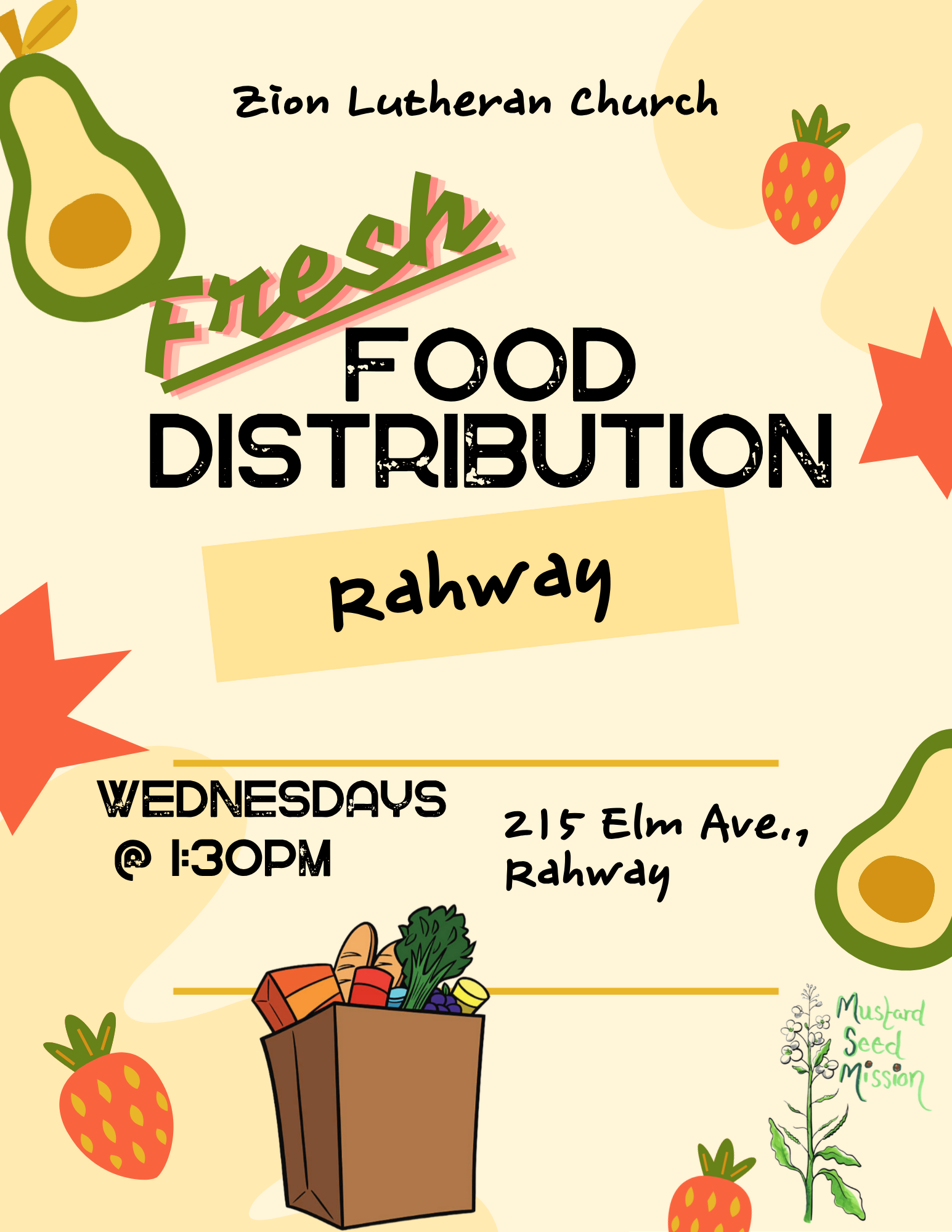 Zion distributes food to the community every Wednesday at 1:30pm in the Social Hall of the church which is accessible to the public via the outside stairs in the driveway of the church.